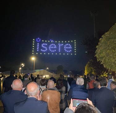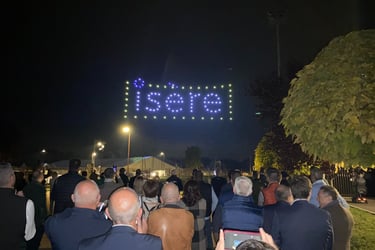 Le 67e congrès des maires de l'Isère se tenait à Aoste, dans les Vals-du-Dauphiné en Nord-Isère. Il a réuni près de 1 500 maires, adjoints et conseiller municipaux des plus grandes comme des plus petites communes du département. La soirée inaugurale s'est terminée avec un ballet de drones lumineux pour un spectacle inédit : L'Isère en lumière, l'envol du territoire. Entièrement personnalisé, il retrace les symboles de Dauphiné, les atouts et les acteurs du territoire. Un grand moment.